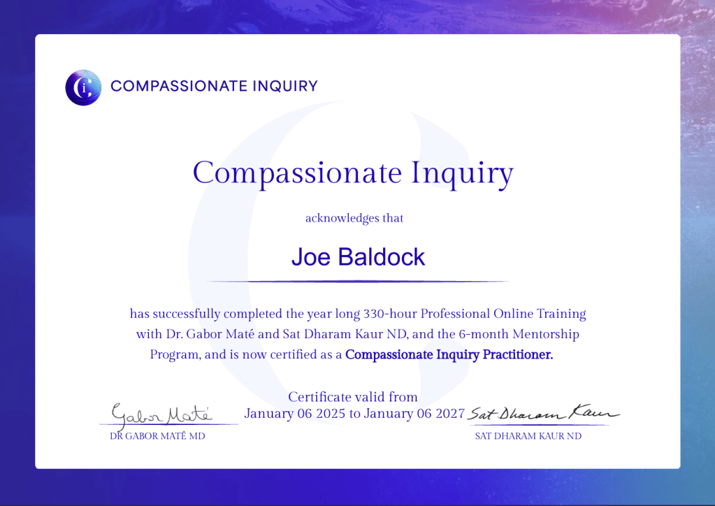 In January 2025 I certified as a Compassionate Inquiry Practitioner.
